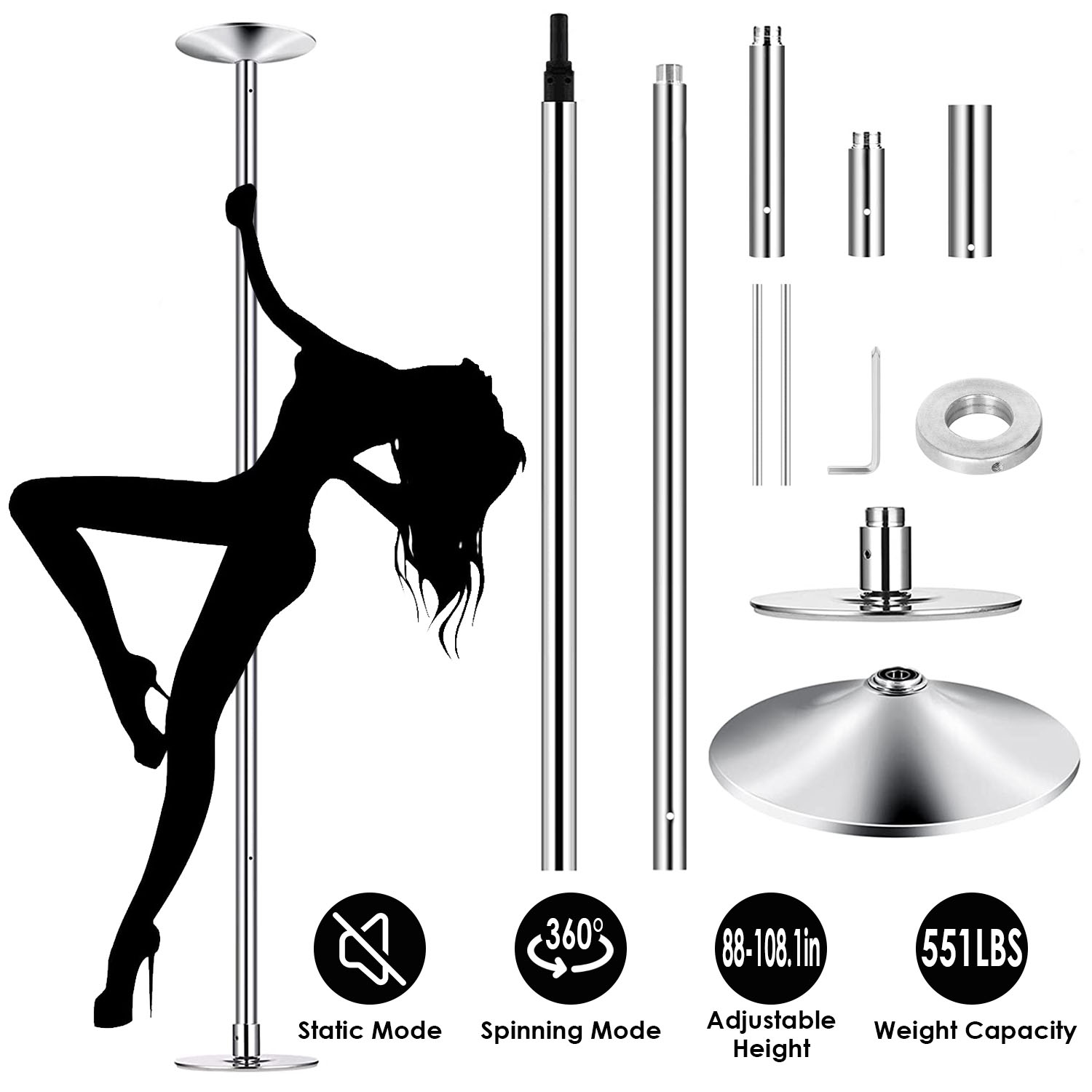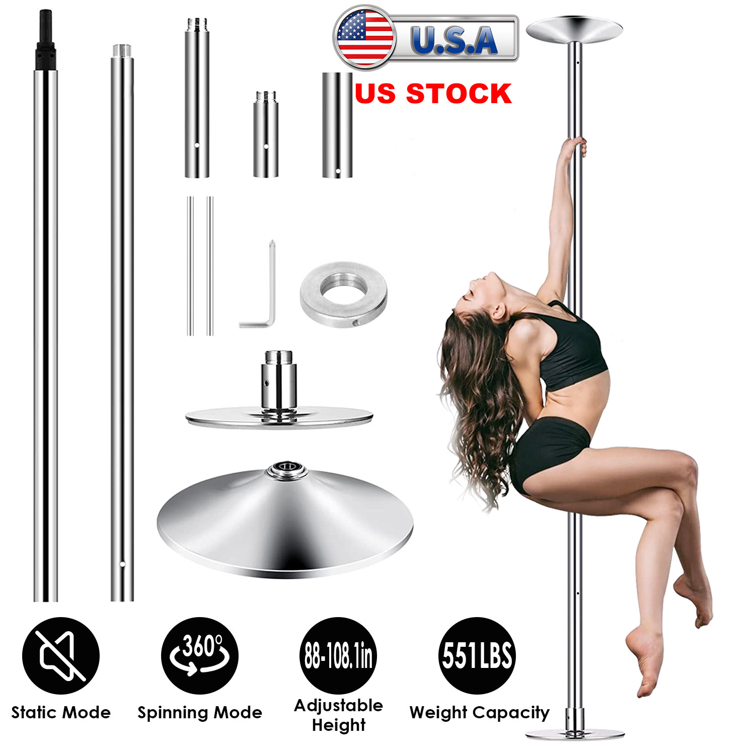 Stripper Dance Pole 45mm Spinning Static Dancing Pole with 88-108.1in Adjustable Height 551LBS Weight Capacity for Fitness Exercise Party Home Club Gy Stripper Dance Pole 45mm Spinning Static Dancing Pole with 88-108.1in Adjustable Height 551LBS Weight Capacity for Fitness Exercise Party Home Club Gy Stripper Dance Pole 45mm Spinning Static Dancing Pole with 88-108.1in Adjustable Height 551LBS Weight Capacity for Fitness Exercise Party Home Club Gy Stripper Dance Pole 45mm Spinning Static Dancing Pole with 88-108.1in Adjustable Height 551LBS Weight Capacity for Fitness Exercise Party Home Club Gy Stripper Dance Pole 45mm Spinning Static Dancing Pole with 88-108.1in Adjustable Height 551LBS Weight Capacity for Fitness Exercise Party Home Club Gy